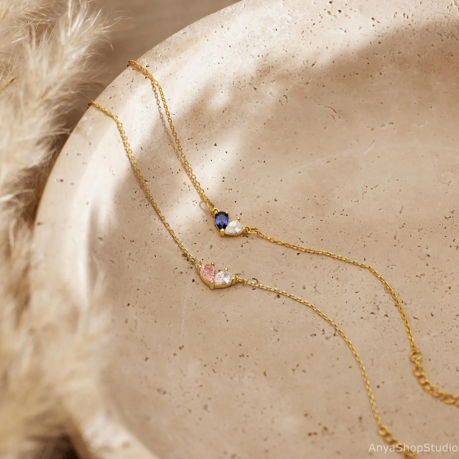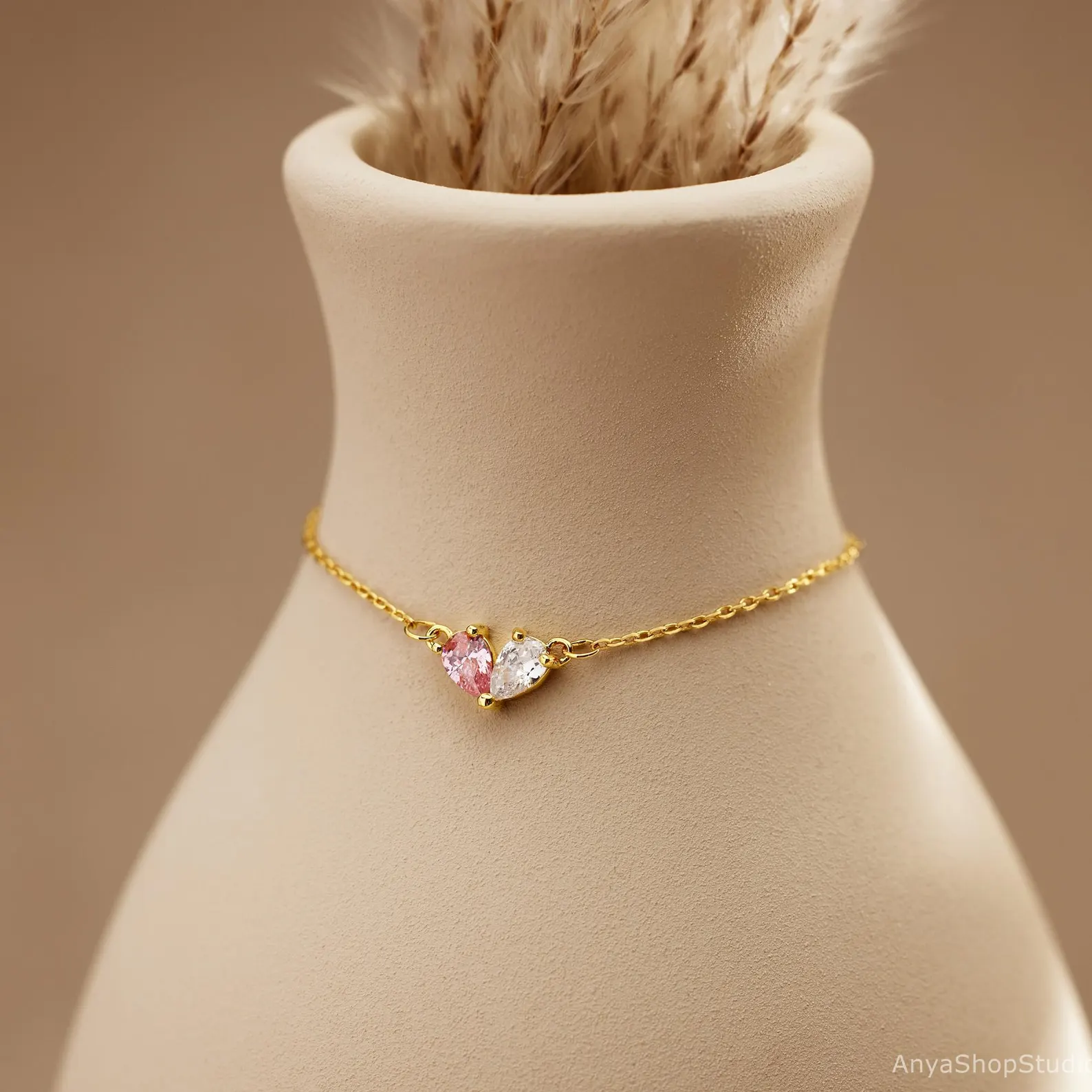 Custom Heart Birthstone Bracelet, 2 Birthstones Bracelet, Mother and Daughter Bracelet, Anniversry Gift, Mothers Gift, MOM Gift